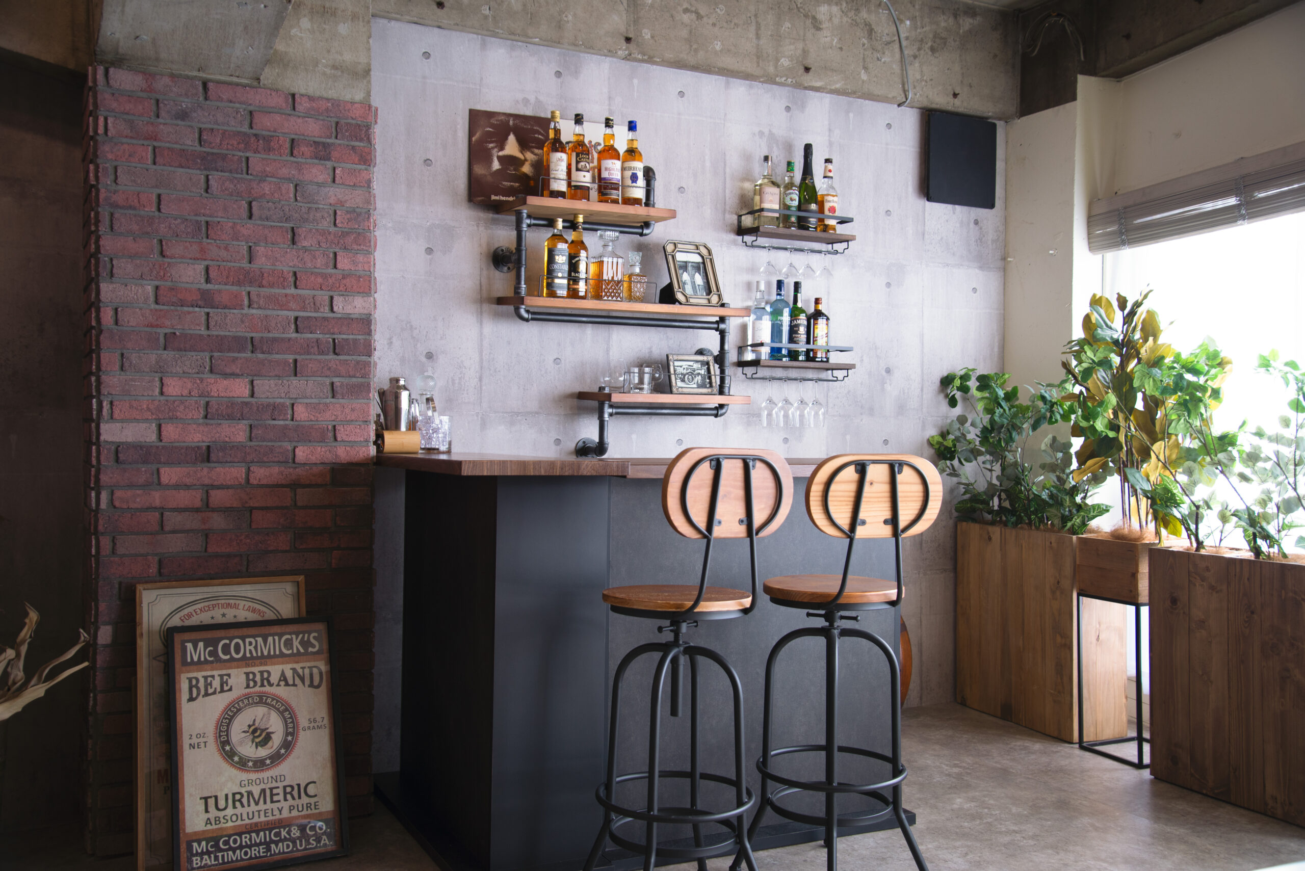 本格的なブルックリン風インテリアとBar カウンターが織りなす