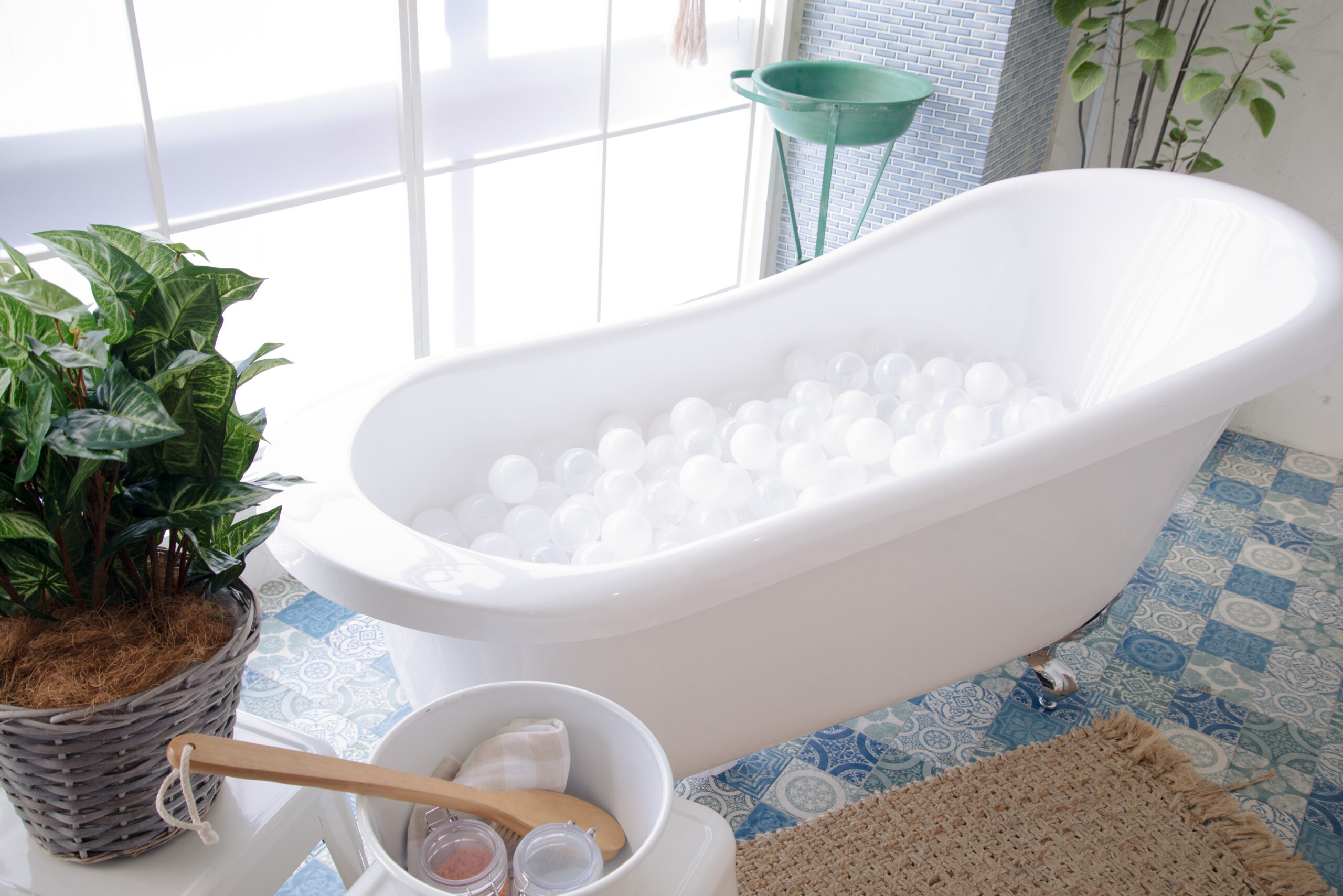 アーチ壁とアンティークドア、猫足バスタブなど